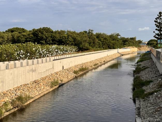水利局辦理「佳里區海埔排水治理工程(第1期A標)」採複式斷面與天然塊石配置,減少大規模開挖與擋土牆,堤後增設綠覆,兼顧防洪、景觀與環境永續,在規劃設計、施工品質、安全管理及生態永續間取得良好平衡,顯著提升排水效能與地方環境品質;「臺南市永康區復華一街排水改善工程」,針對復華一街及周邊易淹水區域,採「高低地分流」策略,商家密集且管線複雜,利用既有設施減少混凝土使用,兼顧交通安全、商家生計與居民權益。完工後強化排水功能,提升社區防洪韌性與效益,成為防洪治理示範案例。
